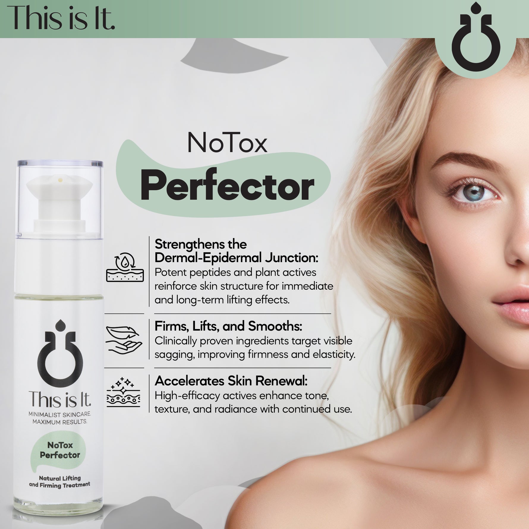 Hydration and Pigmentation Control: With hyaluronic acid for intense moisture and lactic acid to combat pigmentation, NoTox Perfector offers comprehensive skincare benefits.